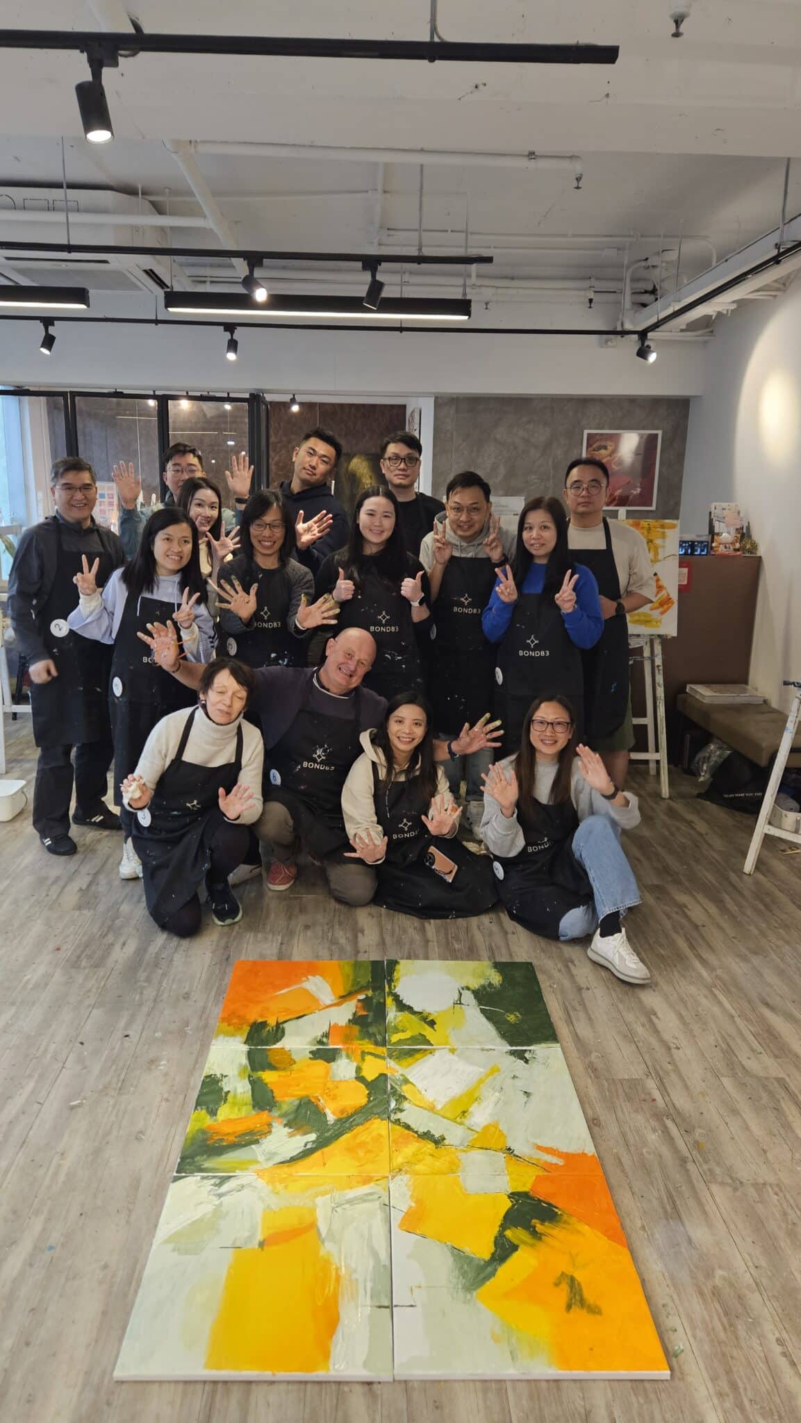 In contrast to a traditional formal style, the team at Phil Design opted for an abstract approach to their artwork. The bold, dynamic brushstrokes and vibrant use of colors beautifully capture and symbolize the team spirit and energy of the company. This creative choice reflects their innovative mindset and their commitment to thinking outside the box, making the artwork not just a visual masterpiece but also a meaningful representation of their collective identity and passion.